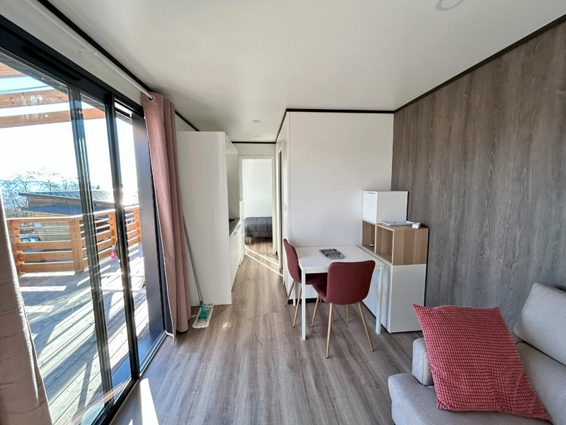 Selon le modèle, le Kubo peut accueillir de 2 à 4 personnes, avec 1 ou 2 chambres, literie de qualité, rangements, ambiance reposante.