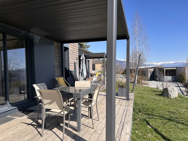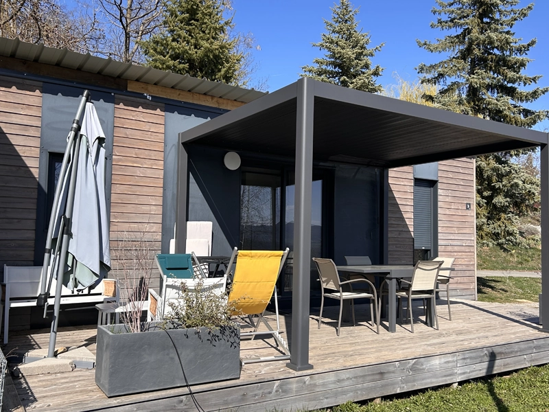 Un lodge spacieux et moderne, idéal pour un séjour en famille ou entre amis, avec une belle ouverture sur l’extérieur et une vue dégagée.