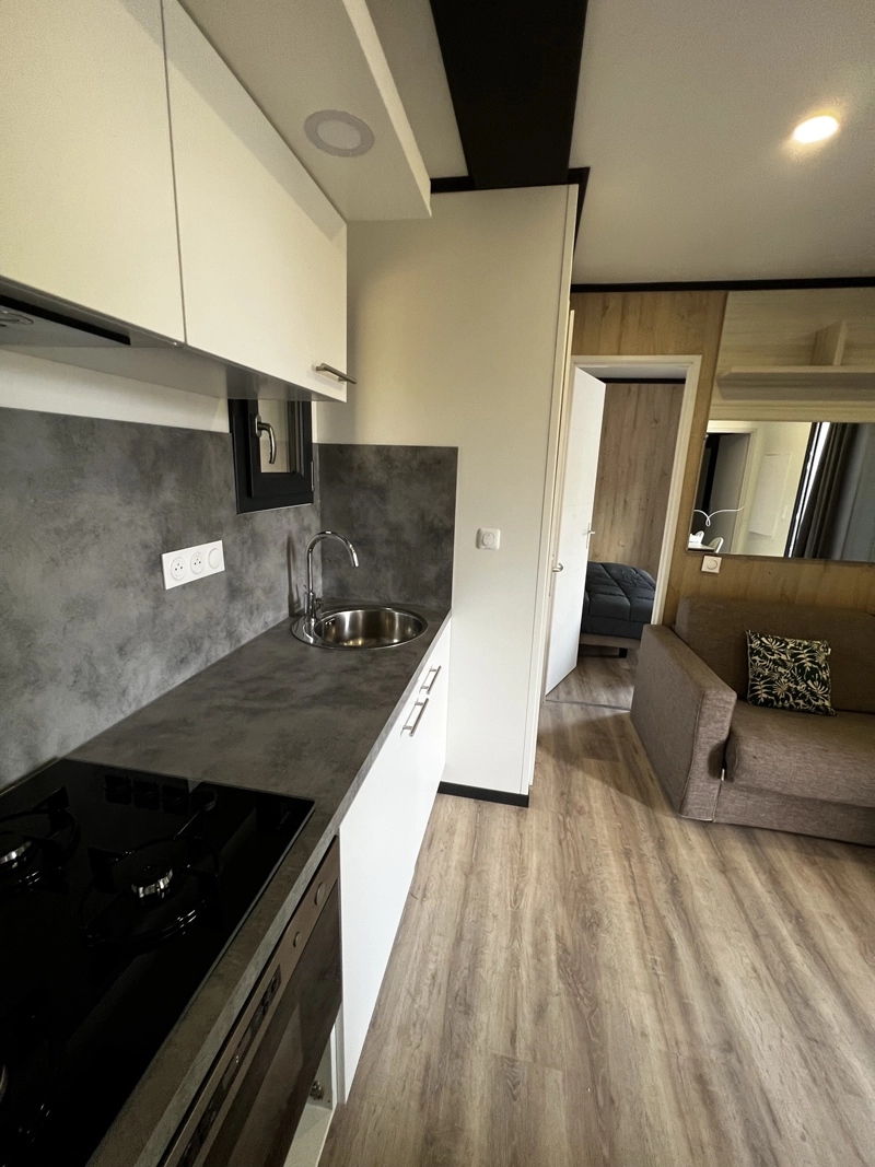 Avec ses 2 chambres dont une grande chambre parentale avec lit 160, le Kubo 35 offre un espace de vie confortable et bien pensé. Son agencement fluide et ses larges ouvertures apportent lumière et sensation d’espace au quotidien.
