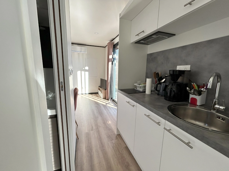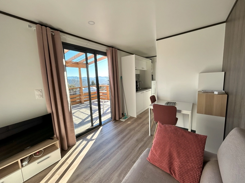 Compact et parfaitement agencé, le Kubo 20 offre un espace confortable et épuré, où chaque détail est pensé pour profiter pleinement du séjour. Les grandes ouvertures laissent entrer la lumière et prolongent naturellement l’intérieur vers l’extérieur.