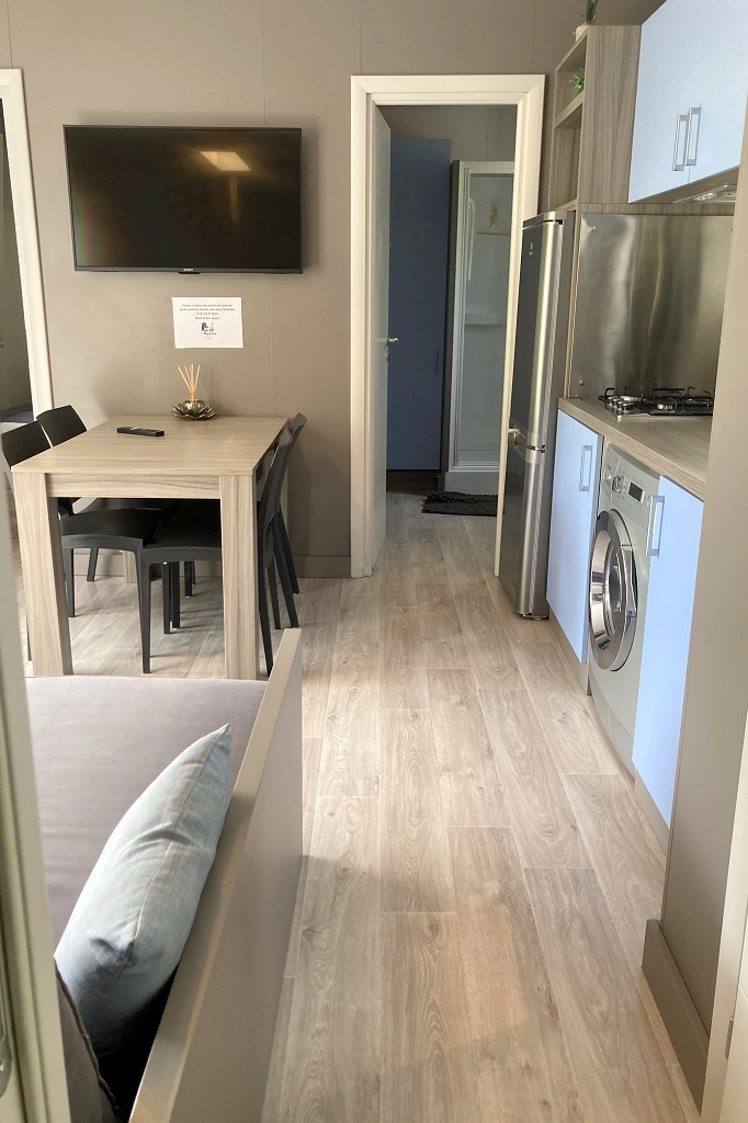 Avec ses 2 chambres dont une grande chambre parentale avec lit 160, le Kubo 35 offre un espace de vie confortable et bien pensé. Son agencement fluide et ses larges ouvertures apportent lumière et sensation d’espace au quotidien.