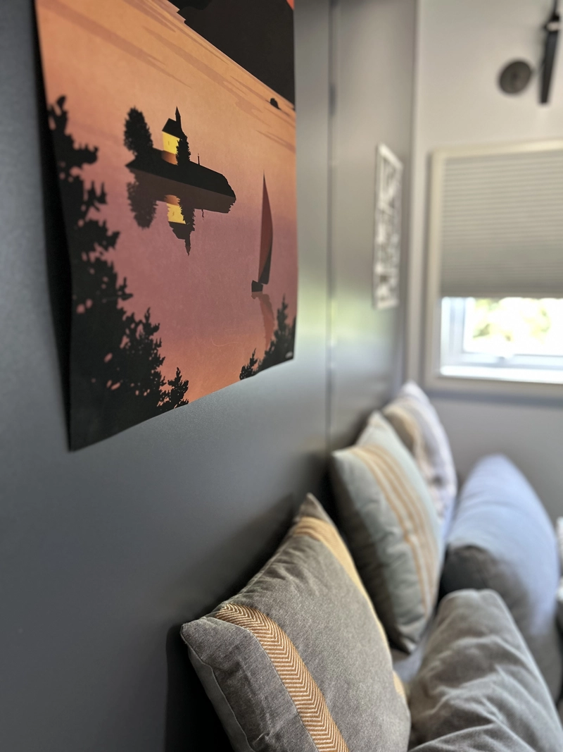 À l’intérieur, vous retrouvez une pièce de vie lumineuse avec cuisine équipée, un espace convivial pour se retrouver après une journée en plein air.